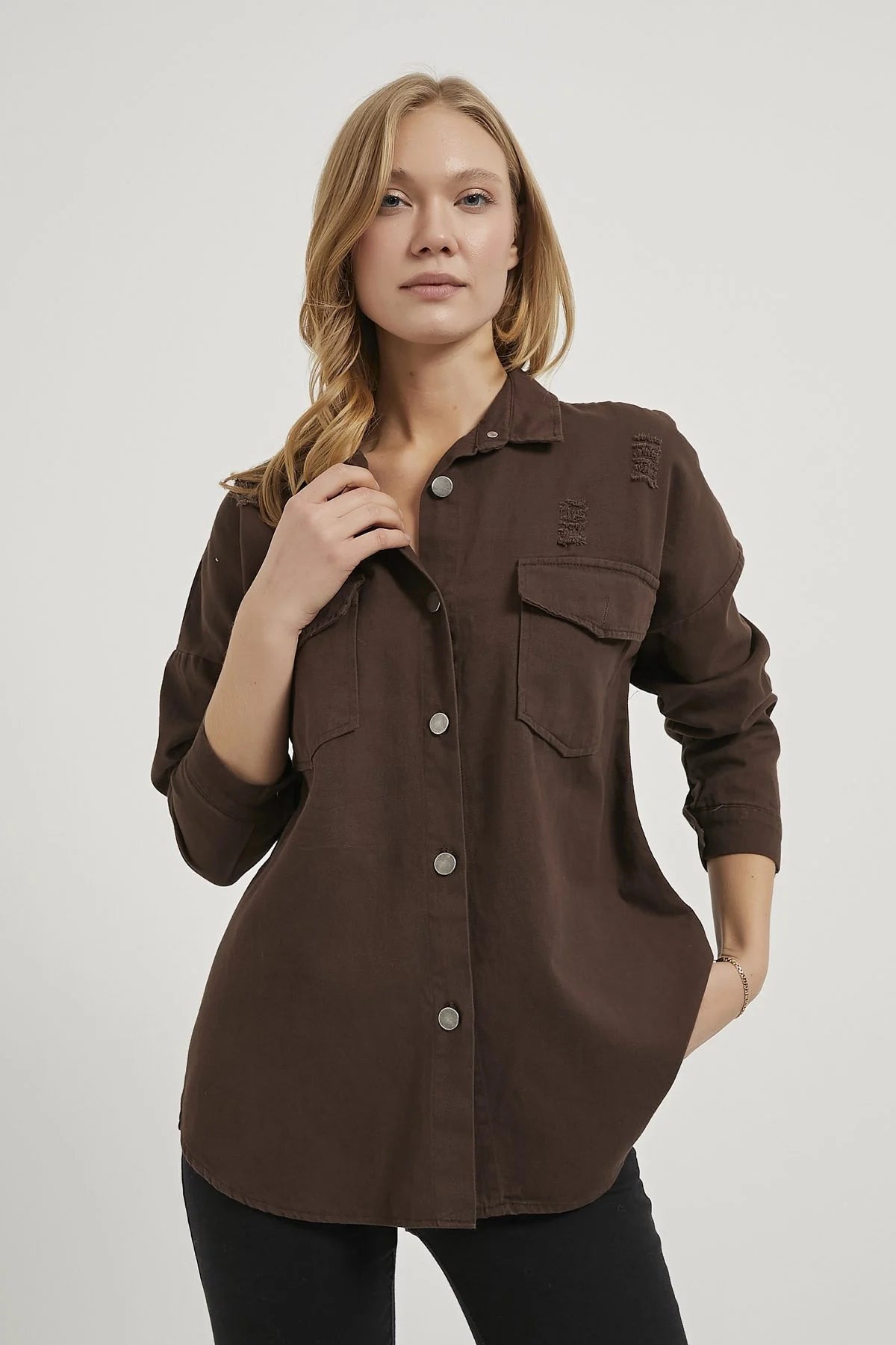 10% Produkt Form Damenhemd mit Klappentaschen und Metallknöpfen €25,10€27,89Inkl. MwSt Farbe Braun Größe S M L Zum Warenkorb hinzufügen Teile mit deinen Freunden Teilen Sie WhatsApp Facebook X Pinterest Messenger E-Mail SKU: 1404-S-BR Barcode: 612-5KB1404GML Herstellerinformation:MODAMONDO UGNiederfeldstr. 12168199 Mannheiminfo@modamondo.de